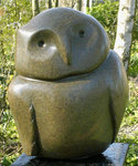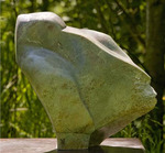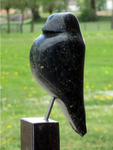 2009Buitenbeeld, vogel van serpentijn op hardstenen sokkel; totale hoogte 120 cm.
