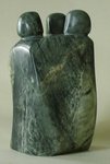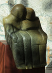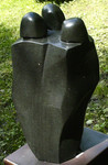 2012Groepsoverleg; braziliaans speksteen op hardhouten sokkel (totale hoogte 41 cm).