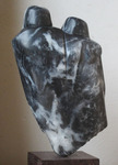 2012uit de serie verbonden; Man en vrouw in Chinees speksteen. Op hardhouten sokkel, totale hoogte 25 cm.